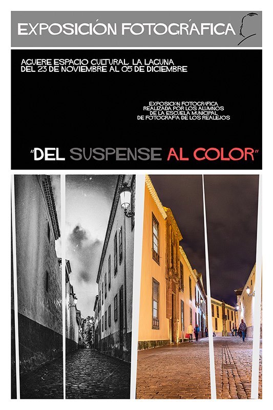 Este viernes 23 de Noviembre se inaugura a partir de las 20:30 h. en el Espacio Cultural Aguere de La Laguna la Exposición Fotográfica “DEL SUSPENSE AL COLOR” encuadrada en los actos del Festival de Cine y Gastronomía de La Laguna.